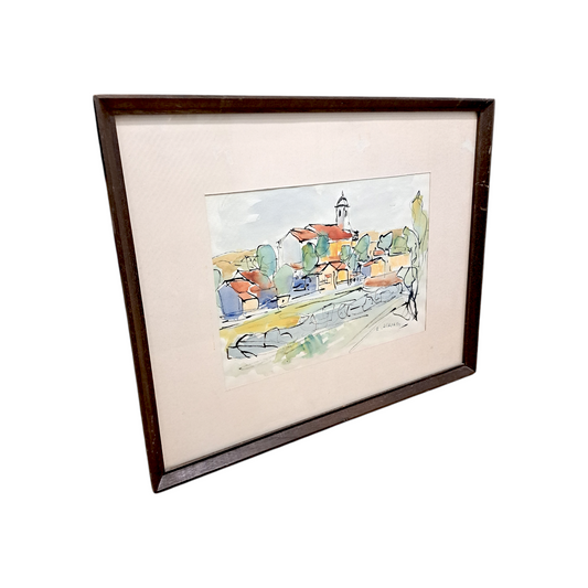 Robert Hlavaty - Mestna veduta, akvarel, 48 cm x 38 cm